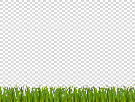透明な背景に隔離された緑のリアルな草の水平境界線 春または夏のベクトルイラスト テンプレート クリップアート グリーティングカード フレームやイラストのためのデザイン要素 のイラスト素材 ベクタ Image